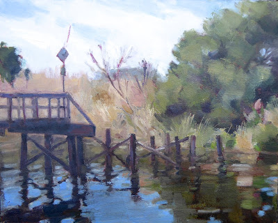 Old bridge at Devereux slough, oil on panel, 8"x10"